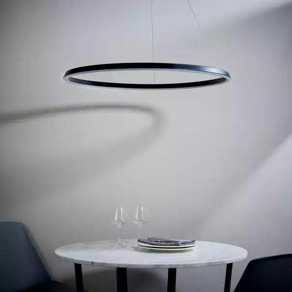 Create the ultimate contemporary look with the stunning architectural Wheeler LED pendant. Suspended from subtle, height adjustable wire cables giving the illusion of floating in mid air, this pendant is the perfect light fitting to give your home a trendy minimalist look, available in a choice of black and white colourways.